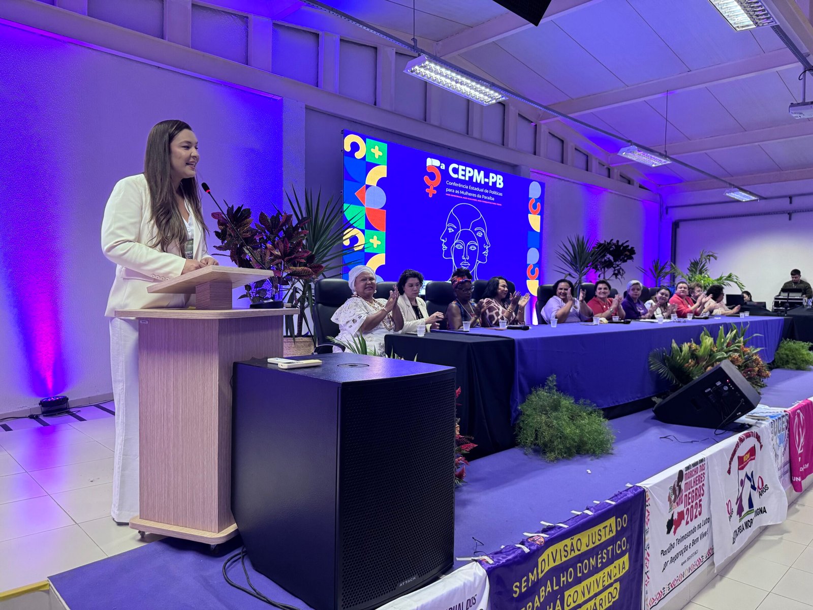 A deputada estadual Camila Toscano (PSDB) participou, nesta sexta-feira (1º), da abertura da 5ª Conferência Estadual de Políticas Públicas para as Mulheres (5ª CEPM-PB), realizada em João Pessoa pela Secretaria de Estado da Mulher e da Diversidade Humana (Semdh-PB). O evento reuniu 384 delegadas eleitas em etapas preparatórias regionais para debater o tema “Mais Democracia, Mais Igualdade e Mais Conquistas para Todas”. Representando a Assembleia Legislativa da Paraíba (ALPB), Camila defendeu, na presença da ministra da Mulher, Márcia Lopes, uma construção coletiva para garantir o fortalecimento de pautas que beneficiem e protejam as mulheres.
