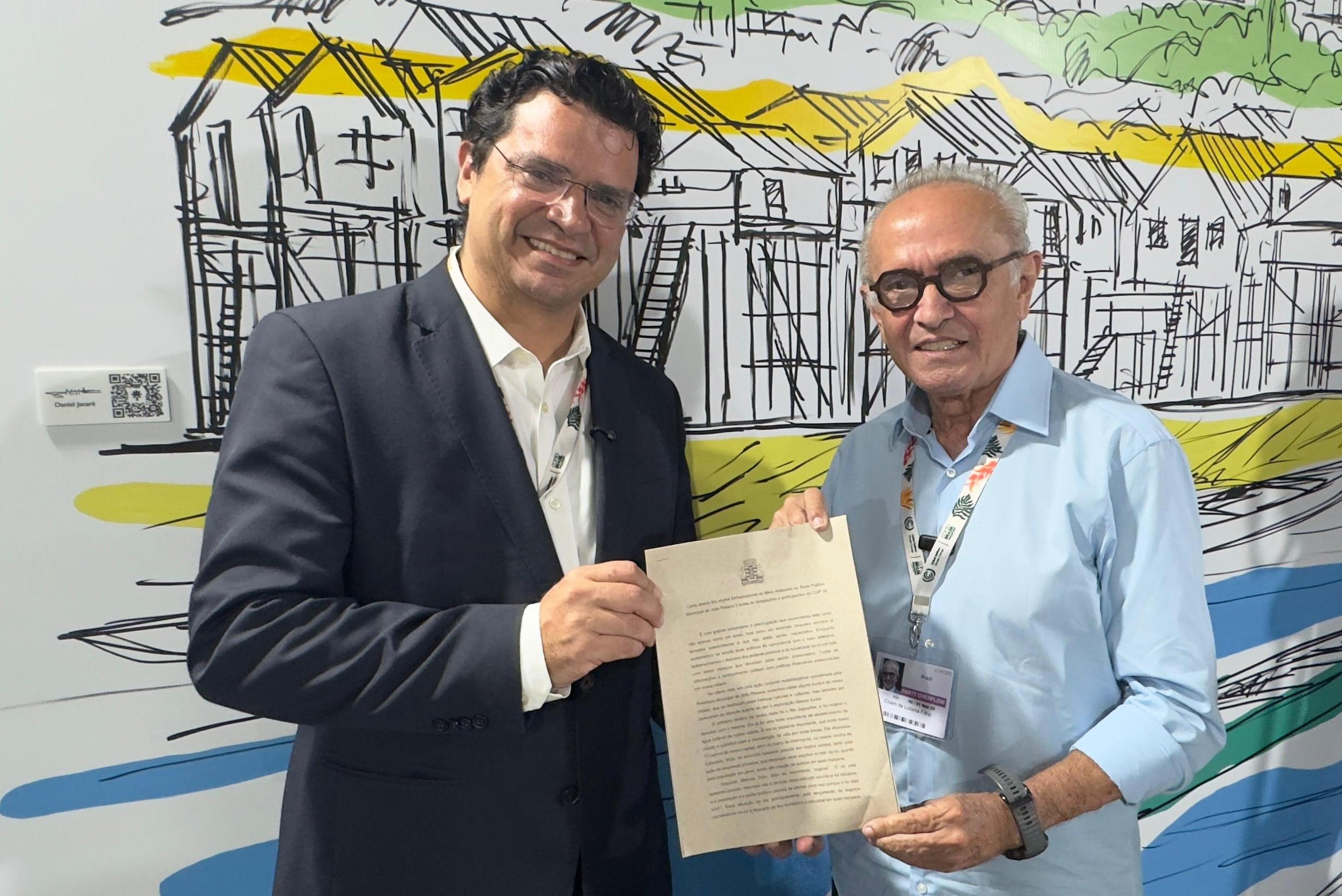 Carta dos Embaixadores do Clima – Durante a programação da COP 30, o prefeito Cícero Lucena também protagonizou um momento simbólico, que foi a entrega da carta produzida pela estudante Allana Beatriz de Oliveira da Silva, da rede municipal de ensino, ao secretário Nacional de Qualidade Ambiental do Ministério do Meio Ambiente, Adalberto Maluf.