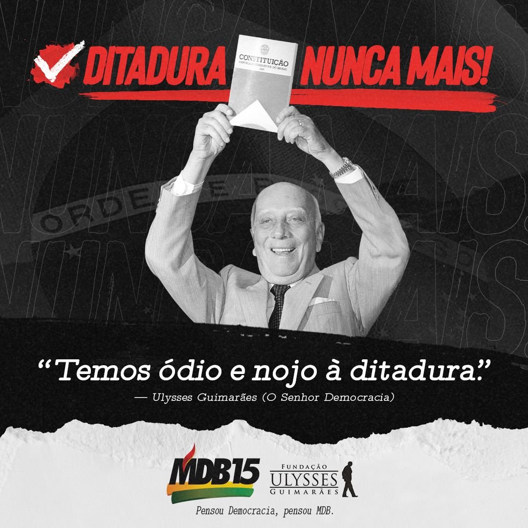 O parlamentar também publicou em seu Instagram imagens dos posts para internet e dos outdoors, com um áudio de Ulysses Guimarães, grande líder emedebista e um dos principais opositores da Ditadura Militar.