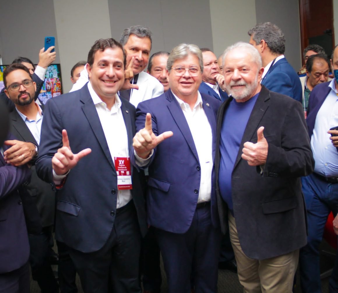 Na abertura do congresso nacional do PSB, em Brasília, o governador João Azevêdo não apenas apertou a mão do ex-presidente Lula (PT), fez a foto ao lado do petista com o gesto do “L”, como sentou ao lado do pré-candidato na formação da mesa.