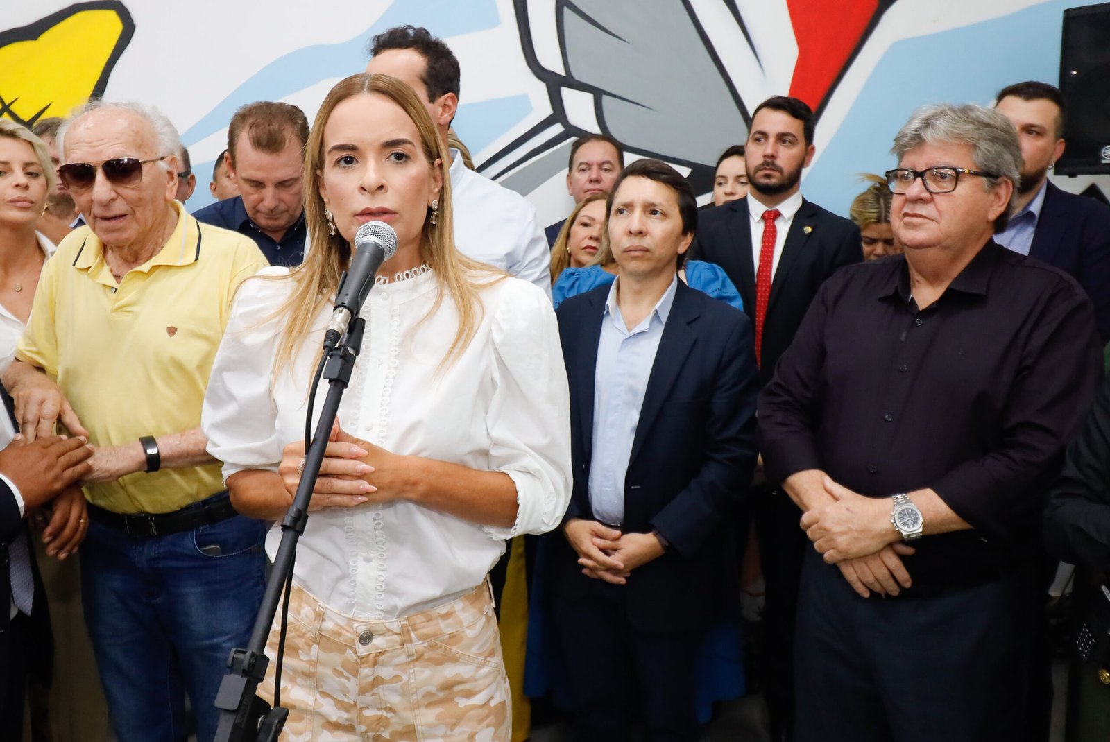 “Vocês têm que perguntar para ela”. Daniella estava ao lado do governador. Ele enfatizou: “De nossa parte, não tenha dúvida de que terá apoio”.