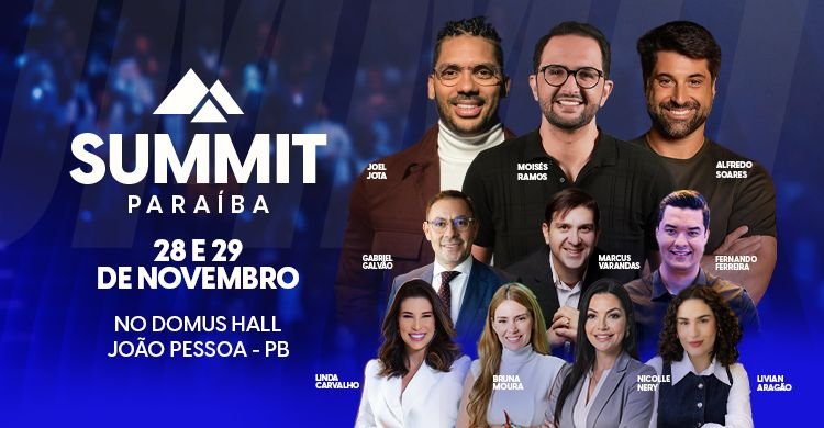 Nos dias 28 e 29 de novembro de 2025, João Pessoa será palco do SUMMIT Paraíba, considerado o maior evento de empreendedorismo, negócios e alta performance do estado. O encontro acontece na Domus Hall e reunirá mais de 15 palestrantes nacionais e locais.