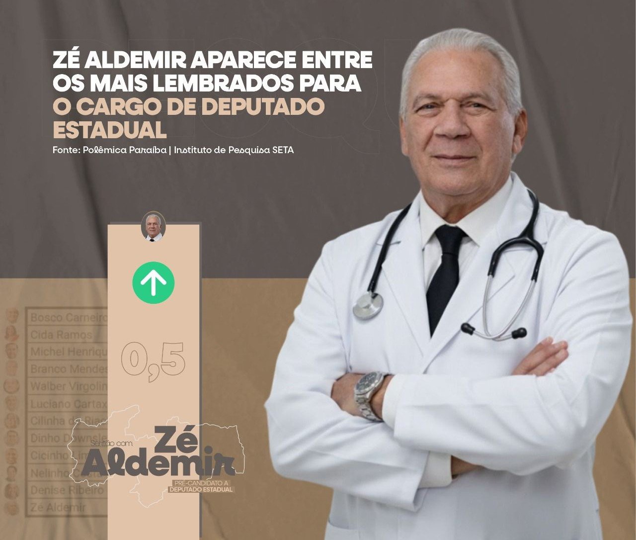 Menos de um mês após anunciar que será novamente candidato a deputado estadual nas eleições do próximo, o ex-prefeito de Cajazeiras, Zé Aldemir, já aparece entre os potenciais eleitos para o pleito de 2026. Pesquisa do Polêmica Paraíba, juntamente com o Instituto de pesquisa SETA, atestam o favoritismo na disputa do político sertanejo.