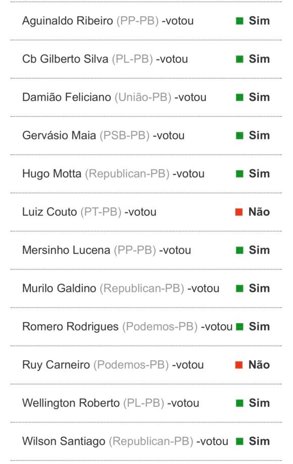 Dos 12 deputados federais paraibanos, apenas Luiz Couto (PT) e Ruy Carneiro disseram ‘Não’ à proposta.