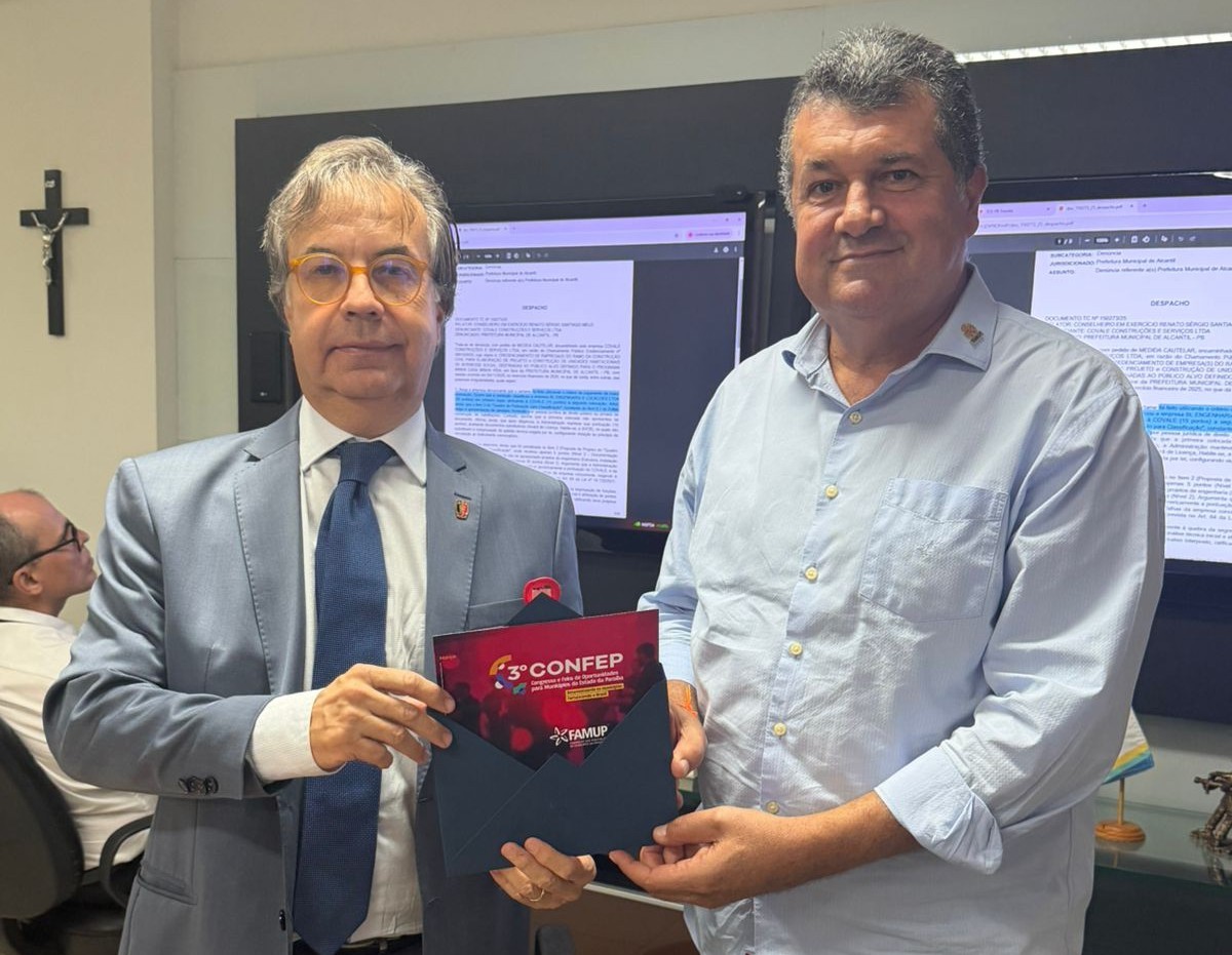 Durante o convite, George Coelho destacou a importância da presença ativa do Tribunal de Contas no evento, especialmente por meio da realização de palestras e debates com temas voltados ao controle e à prestação de contas públicas, promovendo um diálogo direto com prefeitos e prefeitas de toda a Paraíba.